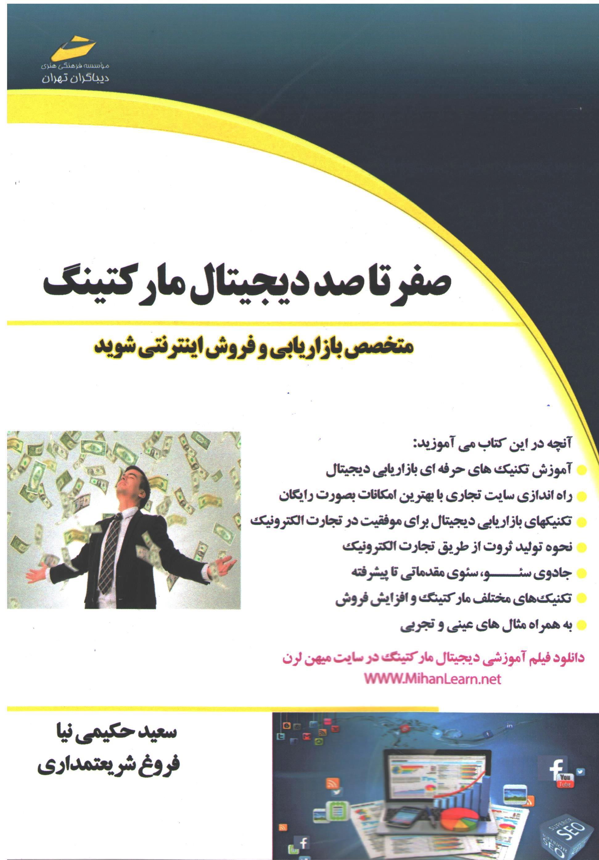 این کتاب برای تجارت در هر نوع کسب‌وکاری در فضای مجازی کاربردی است. تفاوتی نمی‌کند محصول شما دیجیتالی است یا یک کالای فیزیکی. فرقی نمی‌کند از همان گام اول قصد دارید از تجارت الکترونیک شروع کنید یا اینکه تصمیم دارید تجارت سنتی خود را به سمت کسب‌وکار آنلاین هدایت نمایید؛ نقطه آغاز تجارت آنلاین شما همین جاست. باید دقیقا بدانید چه کاری می‌خواهید انجام دهید و یک ایده شفاف داشته باشید. در کتاب «آموزش صفر تا صد دیجیتال مارکتینگ» هر ابزار و روشی که برای بازاریابی اینترنتی لازم است، به شما آموزش داده می شود، بعنوان مثال یاد میگیرید که چگونه با «سئو» دوست موتورهای جستجو شوید، یا چگونه تکنیک ها و استراتژی «بازاریابی محتوا» را در پیش بگیرید. همچنین بصورت عملی با «ابزارهای کاربردی سئو و دیجیتال مارکتینگ» آشنا شده و می توانید به آنالیز وضعیت سایتتان بپردازید. خلاصه آنکه دیجیتال مارکتینگ مسیر موفقیت در دنیای دیجیتال را هموار می کند و این کتاب، اولین کتاب تخصصی در زمینه دیجیتال مارکتینگ در ایران است که تقدیم شما هموطنان عزیزمان می گردد. آنچه در این کتاب می آموزید: آموزش تکنیک های حرفه ای بازاریابی دیجیتال راه اندازی سایت تجاری با بهترین امکانات امانات بصورت رایگان تکنیکهای بازاریابی دیجیتال برای موفقیت در تجارت الکترونیک نحوه تولید ثروت از طریق تجارت الکترونیک جادوی سئو ، سئوی مقدمات تا پیشرفته تکنیک های مختلف مارکتینگ و افزایش فروش به همراه مثال های عینی و تجربی